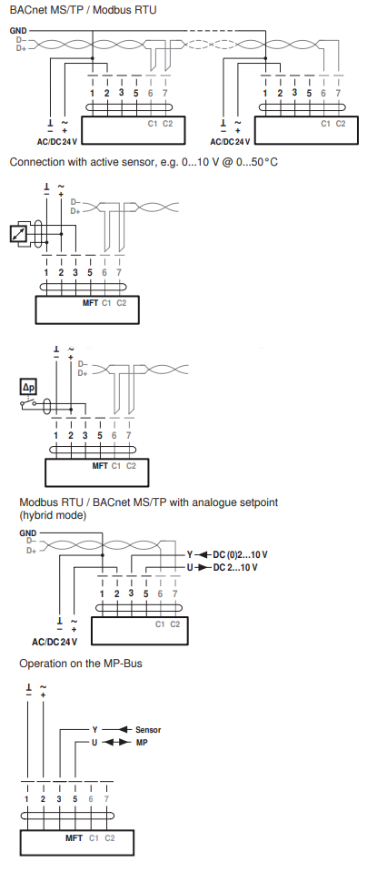 В устройстве Belimo EP025R+MOD предусмотрена возможность подключить активный датчик либо переключающий контакт, при помощи которых можно конвертировать аналоговый сигнал в цифровой, а затем передать его в систему более высокого уровня.
