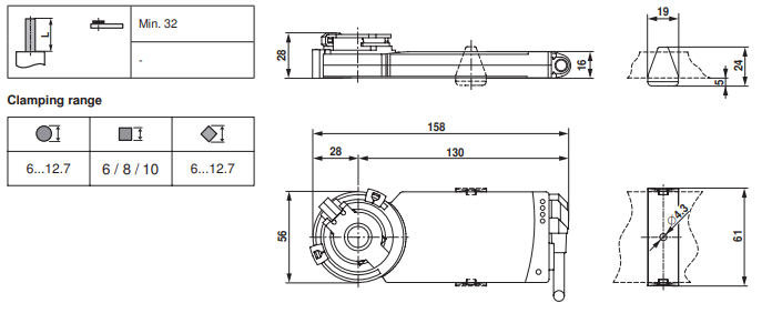 Электропривод Belimo CM230G-L устанавливается на заслонку при помощи крепежного зажима, поставляемого в комплекте. Также для предотвращения произвольного поворота электропривода на заслонке он закрепляется специальным фиксатором.