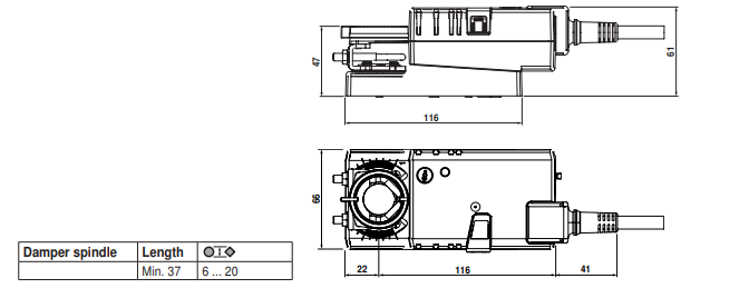 Благодаря тому, что электропривод Belimo LM24A-MF самостоятельно отключатся после достижения заданных позиций, он защищен от перенапряжения при работе, даже без использования концевых выключателей.