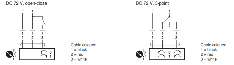 Управление электропривода Belimo LM72A происходит либо по 2-позиционной (Открыто-Закрыто), либо по 3-позиционной схеме.
