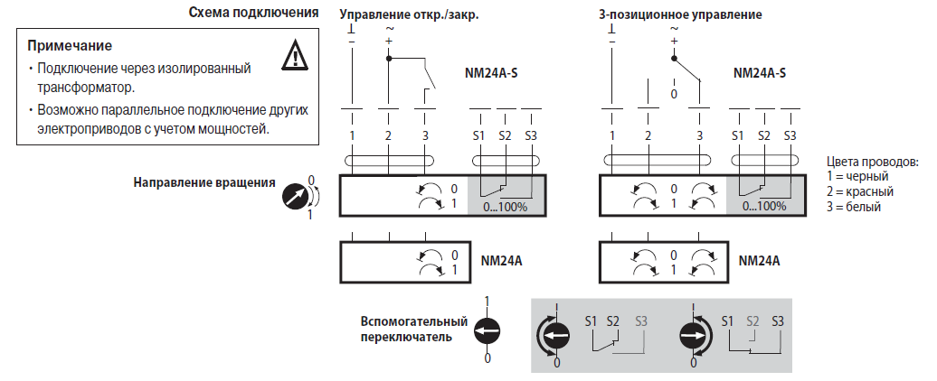Для обеспечения высокой степени защиты от перегрузок в процессе эксплуатации привода Belimo NM24A предусмотрена функция автоматического отключения после прохождения финальных позиций.
