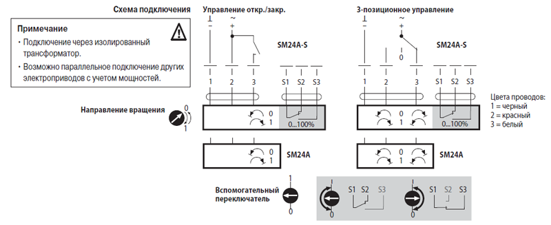 Привод Belimo SM24A-S надежно защищен от возможных перегрузок за счет функции автоматического отключения по достижению финальных позиций.
