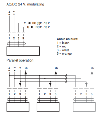 | Управляющий сигнал (переменные установки) | DC 0 - 32 В; Открыто-Закрыто; 3-позиционная схема (только для переменного тока) Интервал работы: 0,5 -30 В (начальная точка), 2,5 – 32 В (конечная точка) |