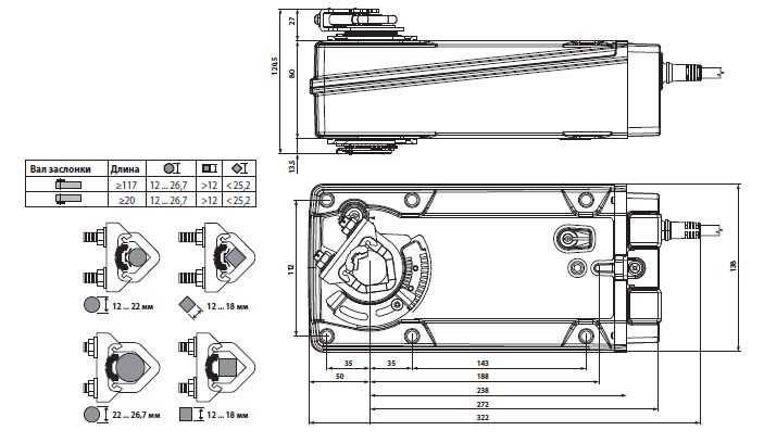 Если привод Belimo EF24A-SR монтируется на заслонку с коротким валом, то необходимость в стабилизаторе отпадает. Его можно либо оставить в заслонке, либо полностью снять.