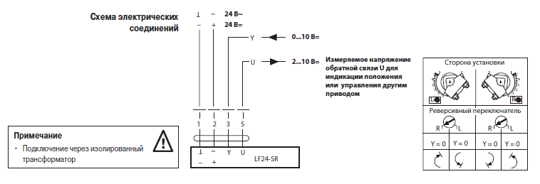 Электрический привод Belimo LF24-SR управляется стандартным аналоговым сигналом в интервале от 0 до 10 В. Одновременно с началом эксплуатации привода возводится встроенная пружина. В ситуациях экстренного отключения электричества она вернет заслонку в ее первоначальную охранную позицию.