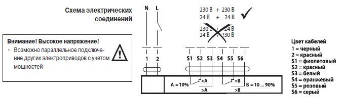 Белимо NF230А-S2 останавливается самостоятельно при достижении установленных позиций. Это позволяет избежать перегрузки и отказаться от концевых выключателей.