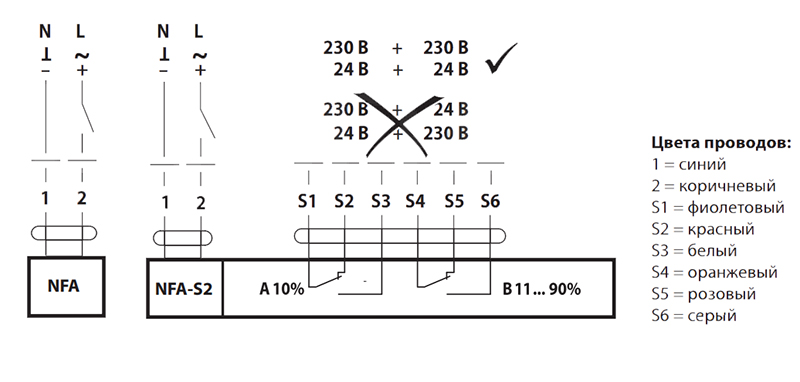 Электропривод Belimo NFA возможно эксплуатировать в интервалах постоянного (24-240 В) и переменного тока (24-125 В) за счет универсального блока питания. При начале эксплуатации привода и его перемещении в положение работы происходит взвод пружины. В случае экстренного отключения питания она вернет заслонку в защитную позицию.