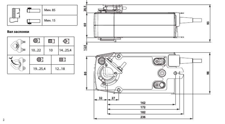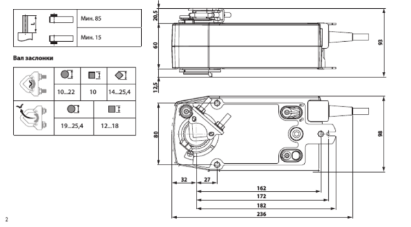 | Период срабатывания | Двигатель: 75 сек, при 90° Пружина: от 20 до 60 сек, в зависимости от температуры (-30°С … +50°С) |