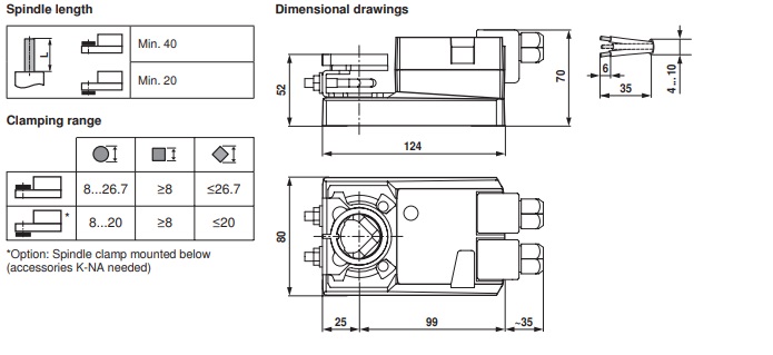 Монтаж электропривода Belimo NM24A-S-TP на заслонку осуществляется при помощи универсального крепежного зажима (входит в базовую комплектацию). Также для предотвращения вращения корпуса привода на заслонке в комплект входит фиксатор, стабилизирующий привод.
