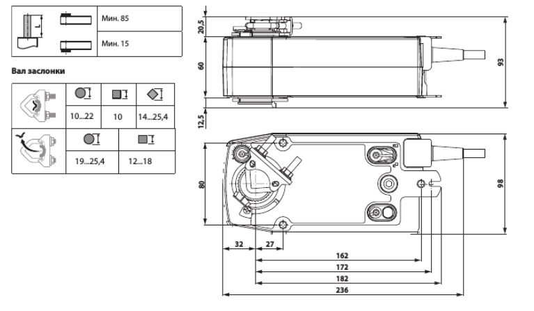 | Продолжительность работы | Двигатель: 75 сек, угол 90° Пружина: 20 – 60 сек в зависимости от температуры (-30°C … +50°C) |