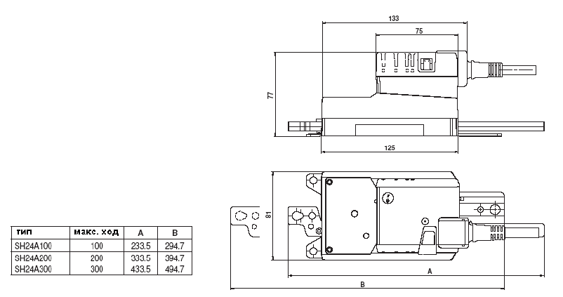 | Время движения | - SH240A100/200/300 150 с / 100 мм |