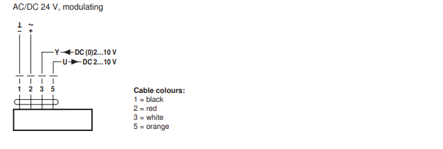 Для управления электроприводом воздушной заслонки Belimo LMC24A-SR-F применяется аналоговый сигнал в диапазоне 0 - 10 В. Согласно сигналу от контроллера, привод занимает необходимую позицию. Сигнал обратной связи U показывает электрическом способом, в какой позиции находится привод в данный момент. Также U сигнал является управляющим для других приводов.