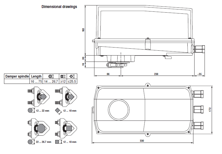 | Override control | MAX (maximum position)= 100% MIN (minimum position)= 0% ZS (intermediate position, only AC)= 50% |