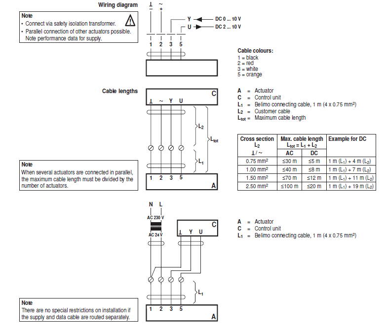 | Position feedback (Measuring voltage) | DC 2 ... 10 V, max. 0.5 mA |