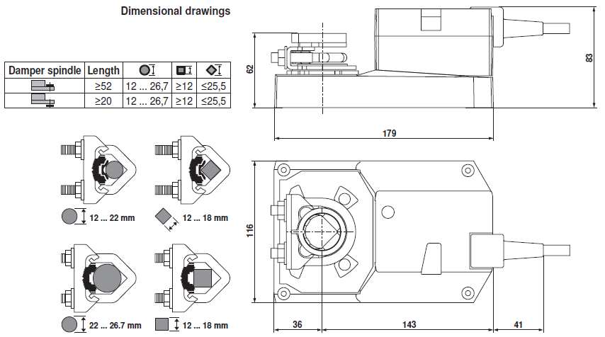 | Ambient temperature ! | –30 ... +40°C (no restrictions) +40 ... +50°C (Caution: can only be used with restrictions. Please contact your Belimo representative.) |