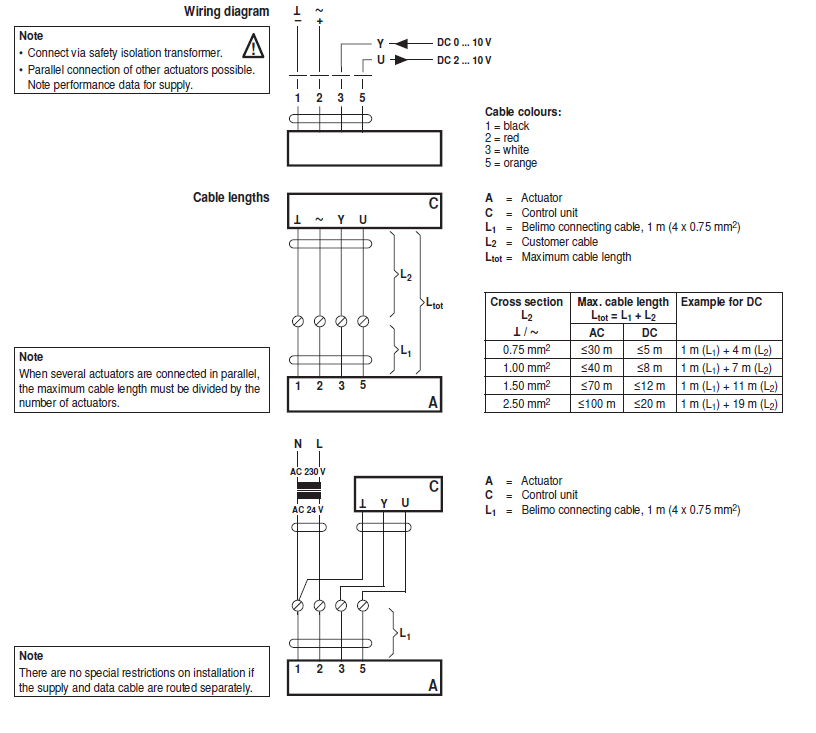 | Position feedback (Measuring voltage) | DC 2 ... 10 V, max. 0.5 mA |