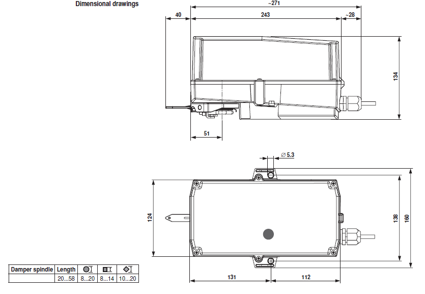 | Angle of rotation | Max. 95° , can be limited at both ends with adjustable mechanical end stops |