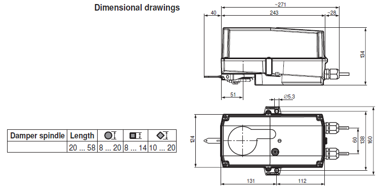| Angle of rotation | Max. 95° , can be limited at both ends with adjustable mechanical end stops |