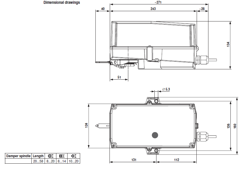 | Angle of rotation ) | Max. 95° , can be limited at both ends with adjustable mechanical end stops |