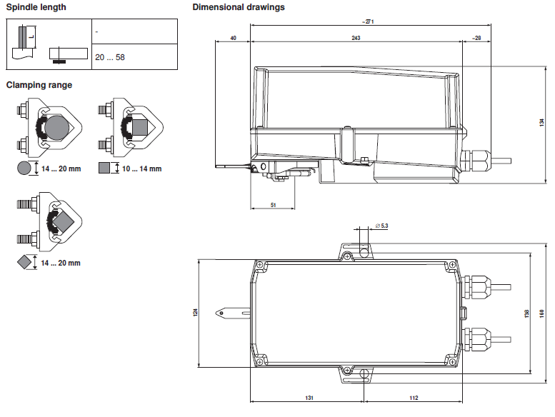 С помощью механических упоров угол поворота электропривода может быть настроен от 0 до 90°. Внимание: чтобы установить нужный угол, нужно снять защитную крышку привода.
