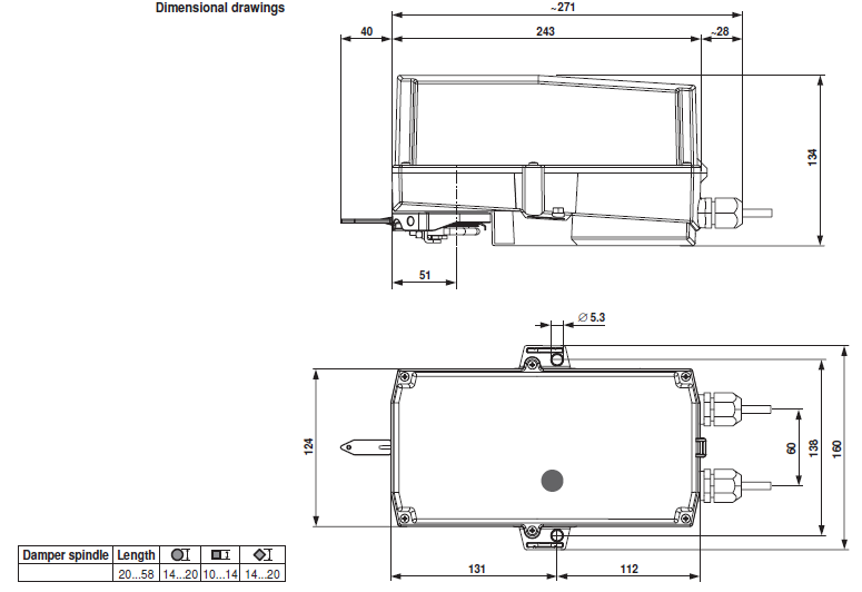 | Angle of rotation | Max. 95° , can be limited at both ends with adjustable mechanical end stops |
