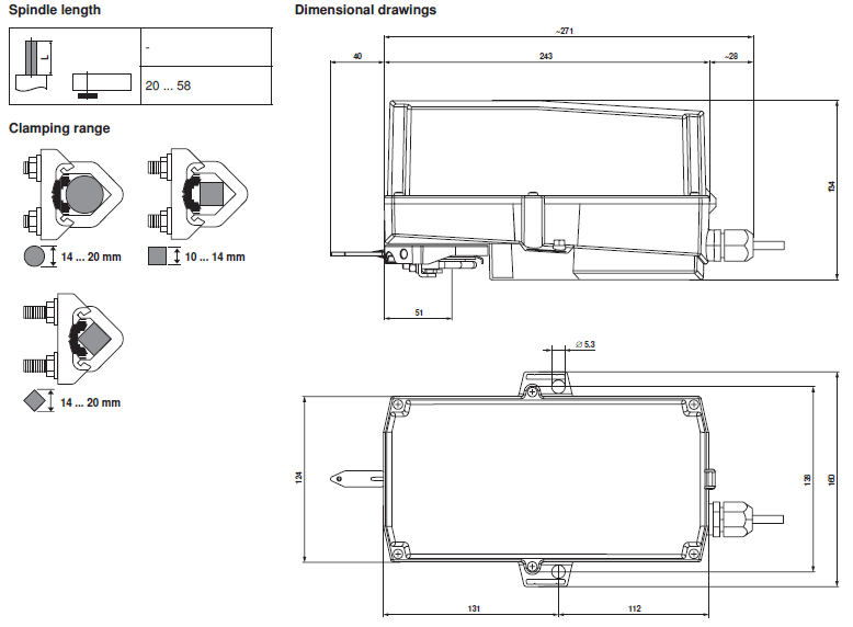Угол поворота привода Belimo SM24P-MF может настраивать от 0 до 90° посредством механических упоров с обеих сторон корпуса.