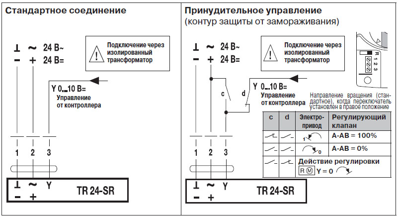 Защита от перегрузок в приводе BELIMO TR24-SR обеспечивается за счет функции автоматического прекращения работы по достижению финальных положений.