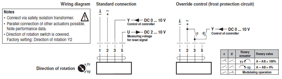 | Position feedback | DC 2 ... 10 V, max. 1 mA (Measuring voltage U) |