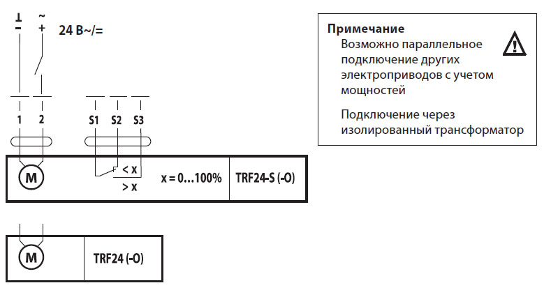 | Направление вращения: | - TRF24(-S) Отключен: Кран закрыт (А – АВ = 0%) - TRF24(-S)-O Отключен: Кран открыт (А – АВ = 100%) |