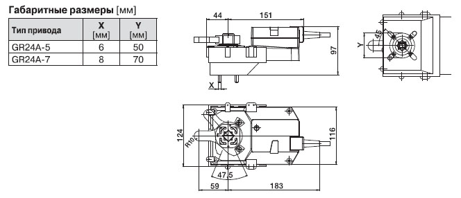 Электропривод GR24A-5 устанавливается на дисковые поворотные заслонки BELIMO D6... с установочным фланцем F05, а также на поворотные заслонки других производителей клапанов, соответствующих следующей спецификации: