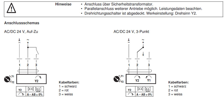 | Anschluss Speisung / Steuerung | Kabel 1 m, 3 x 0.75 mm² (halogenfrei) |