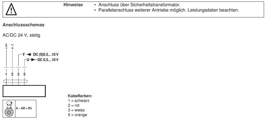 | Stellungsrückmeldung U Hinweis | max. 0.5 mA |