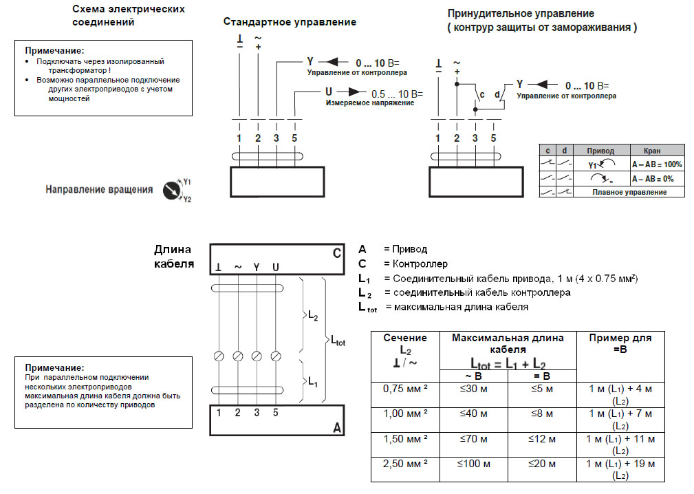 | Обратная связь (измеряемое напряжение) | 0.5… 10 В = , макс. 0.5 мА |