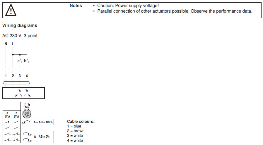 | Direction of rotation spring-return | Deenergised NC, valve closed (A - AB = 0%) |