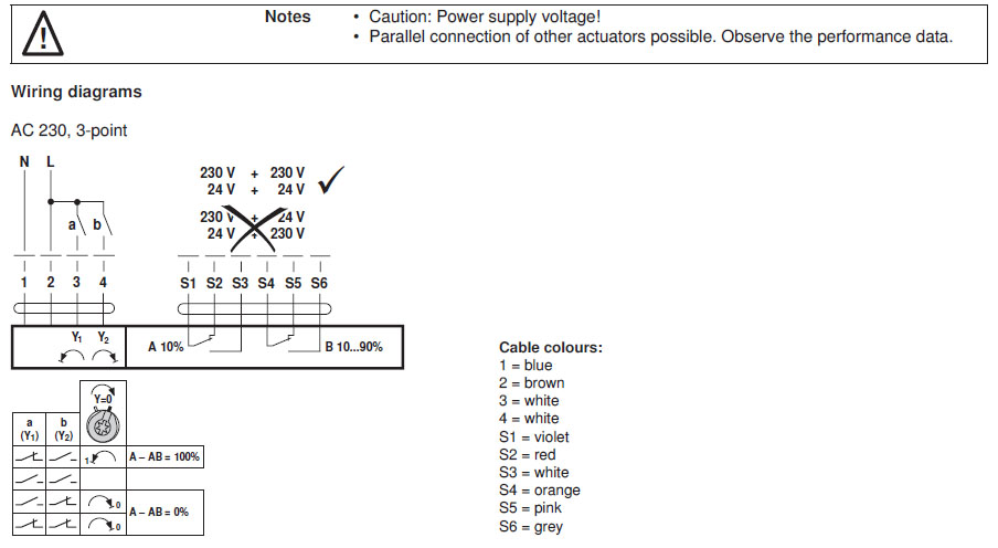 | Connection auxiliary switch | Cable 1 m, 6 x 0.75 mm² |