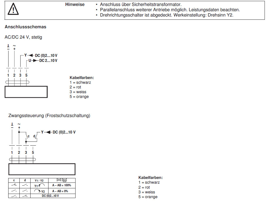 | Stellungsrückmeldung | U Hinweis max. 1 mA |