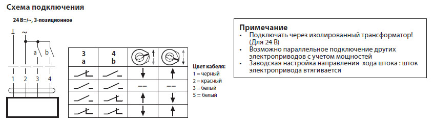 | Номинальное напряжение | 24 В ~, 50/60 Гц ; 24 В= |