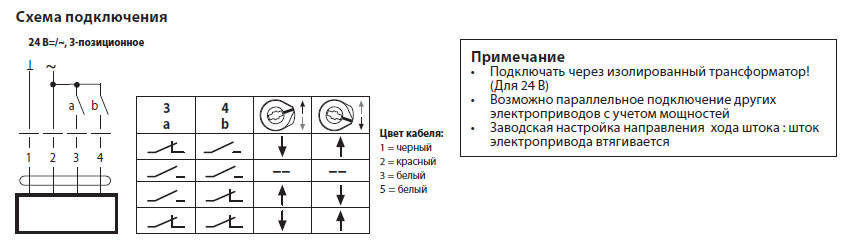 Электропривод у применяется для управления седельными клапанами. Оснащен конденсатором, обеспечивающим защитную функцию. Срок эксплуатации конденсатора - 15 лет.