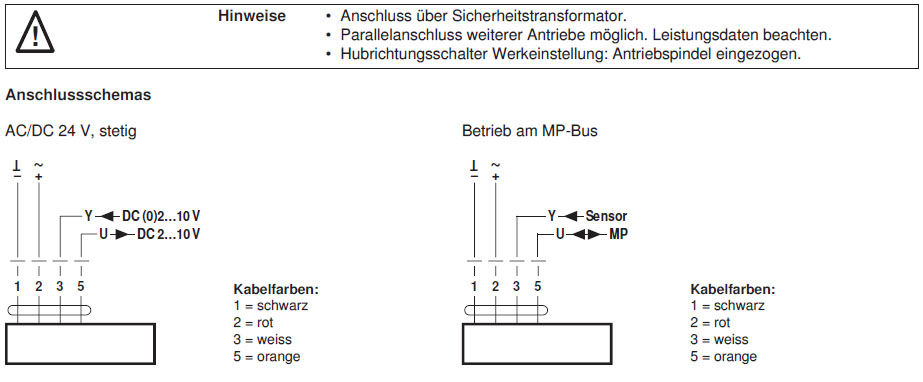 | Stellungsrückmeldung U Hinweis | max. 0.5 mA |