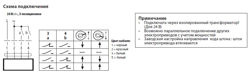 | Номинальное напряжение | 24 В ~, 50/60 Гц ; 24 В= |