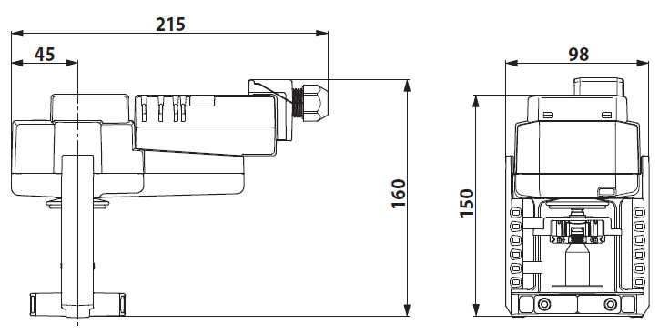 Ход штока определяется механически на кронштейне со специальными накладками. Диапазон хода настраивается автоматически во время работы.