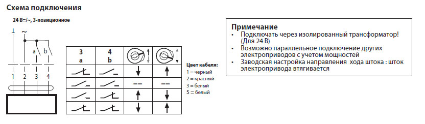 | Номинальное напряжение | 24 В ~, 50/60 Гц ; 24 В= |