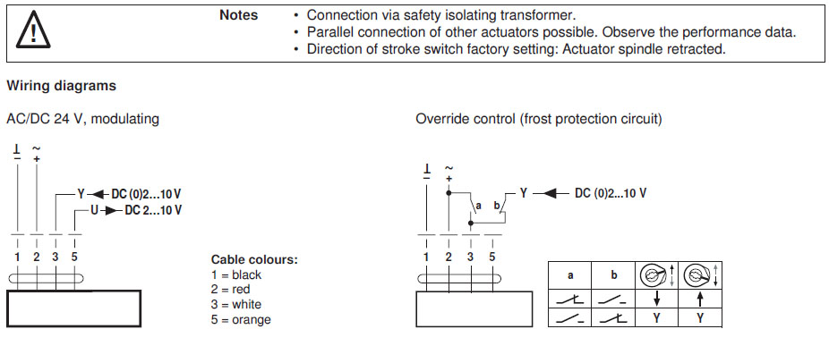 | Emergency setting position A | ctuator spindle 0...100%, adjustable (POP rotary button) |